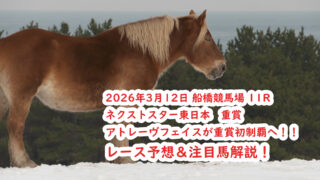 船橋競馬場 2026年3/12(11R) ネクストスター東日本 重賞 アトレーヴフェイスが重賞初制覇へ!! レース予想&注目馬解説! 船橋競馬場